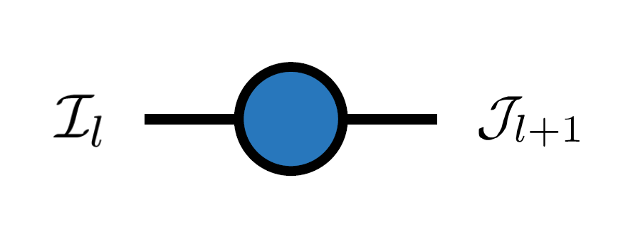 Finally, the two-dimensional slice of $F$ is an order 4 tensor with two free external indices. \begin{equation} \Pi_l = F(\mathcal{I}_{l-1},\sigma_l,\sigma_{l+1},\mathcal{J}_{l+2}) \end{equation}